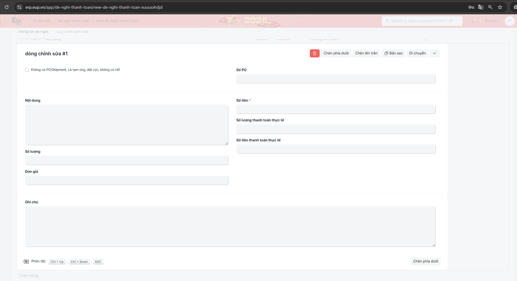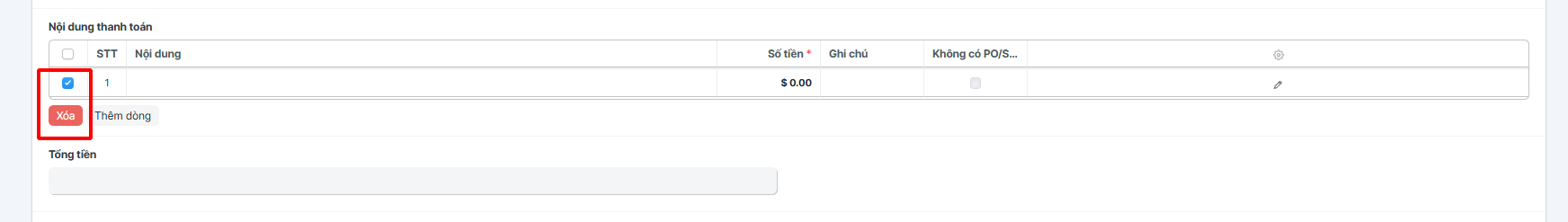 Tích vào “Thêm dòng” và điền chi tiết nội dung thanh toán
