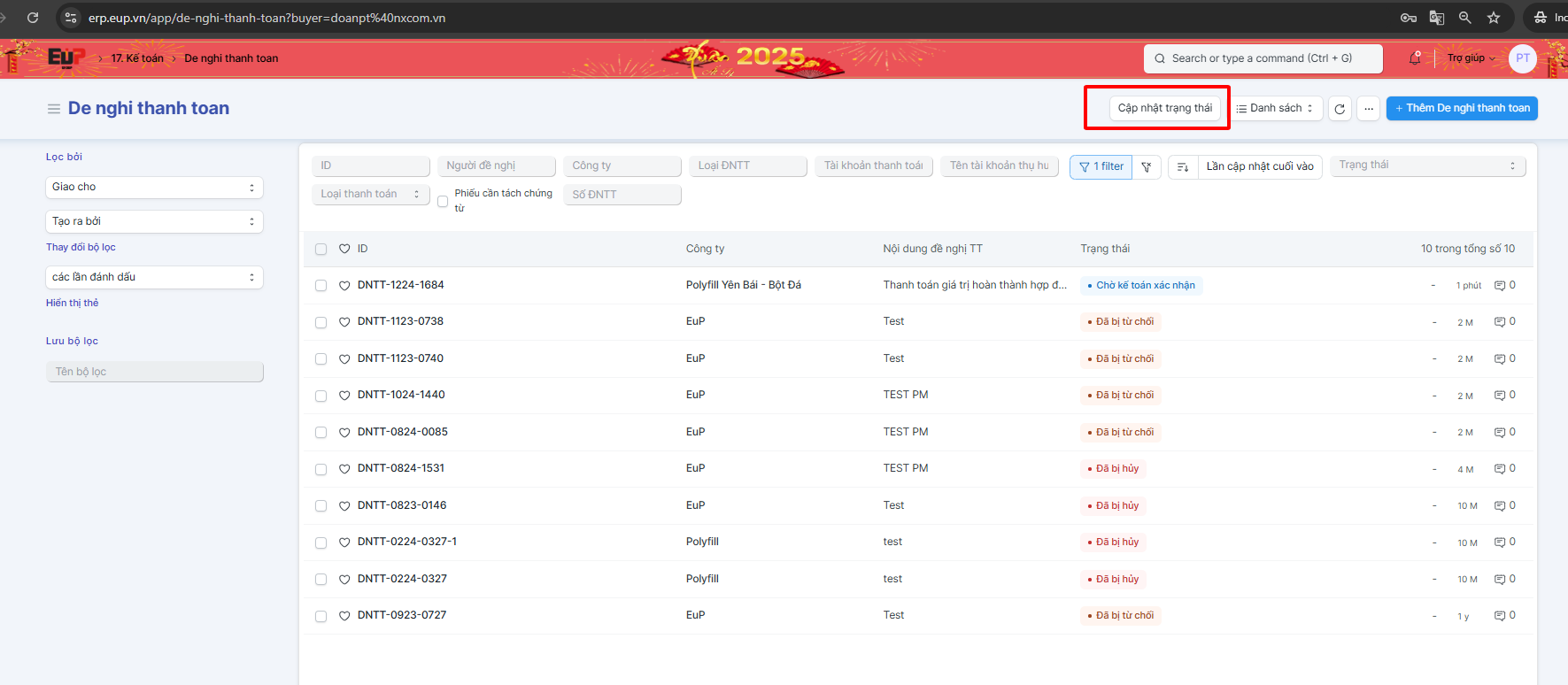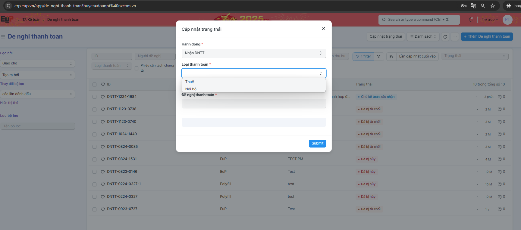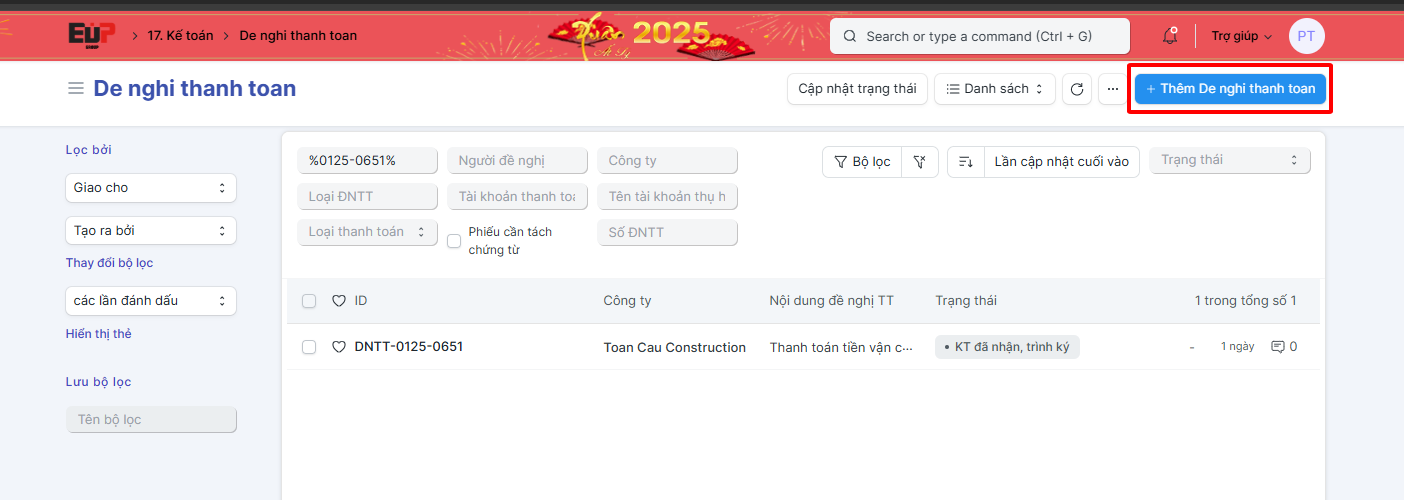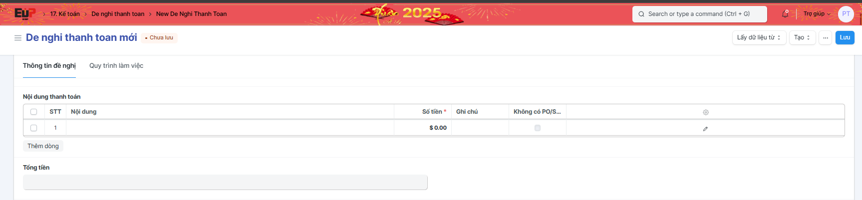 Trang chính > 17. Kế toán > Đề nghị thanh toán
