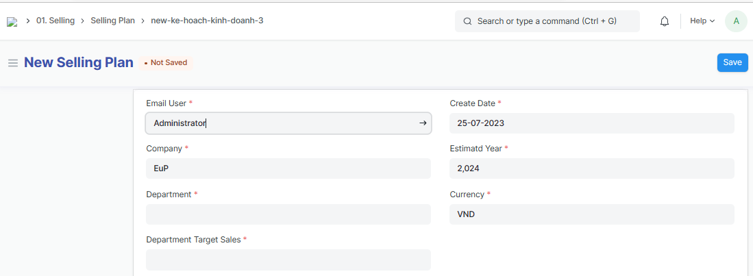 Step 1: Access the function of creating new Sellling Plan on the system by following the link: Home page => Selling => Selling plan => Add Selling plan