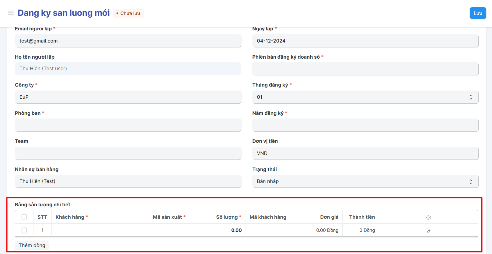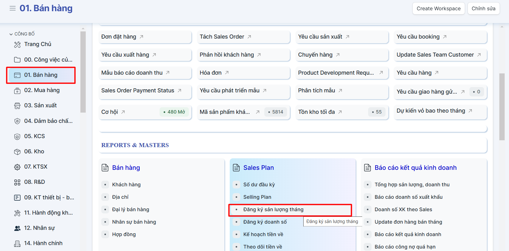 Đăng ký sản lượng là chức năng trên hệ thống ERP cho phép các nhân viên kinh doanh đăng ký sản lượng sản xuất hàng tháng dựa trên doanh số đăng ký theo tháng;