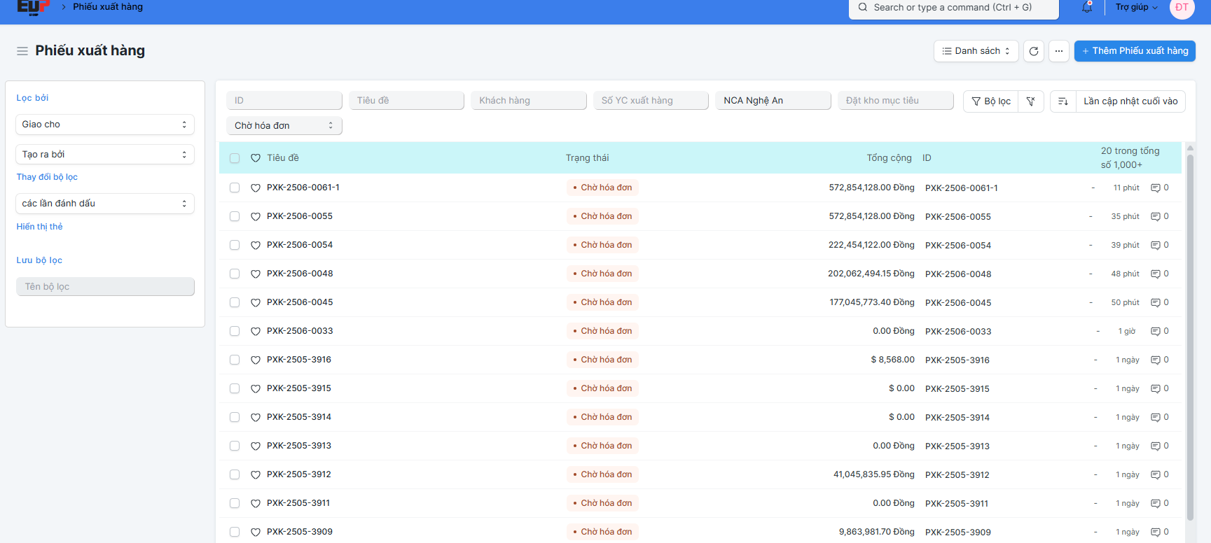 Giao diện màn hình của phiếu xuất hàng như sau: