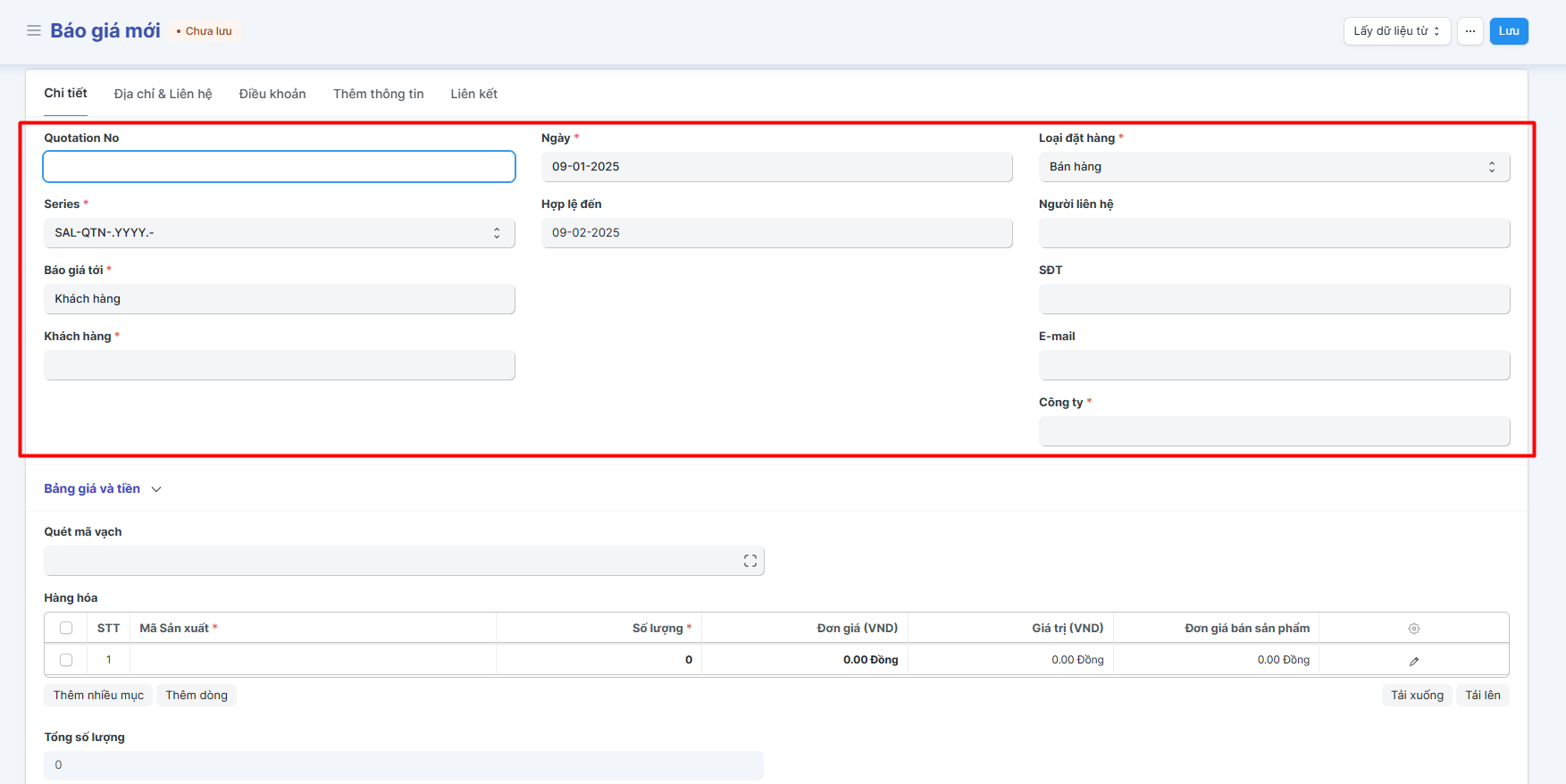 Trang chủ > 1. Bán hàng > Báo giá