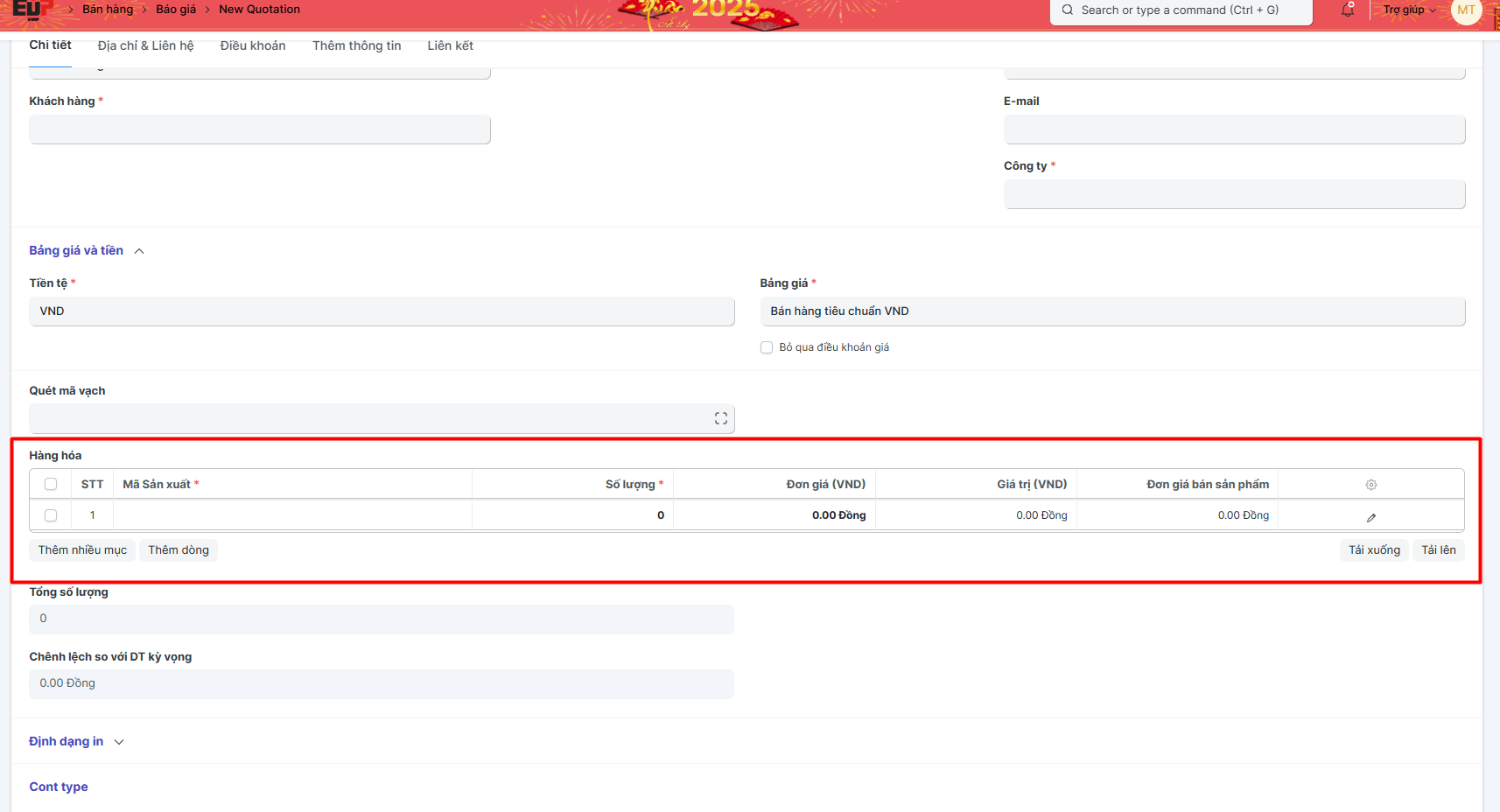 Bước 4: Nhập danh sách hàng hóa báo giá: