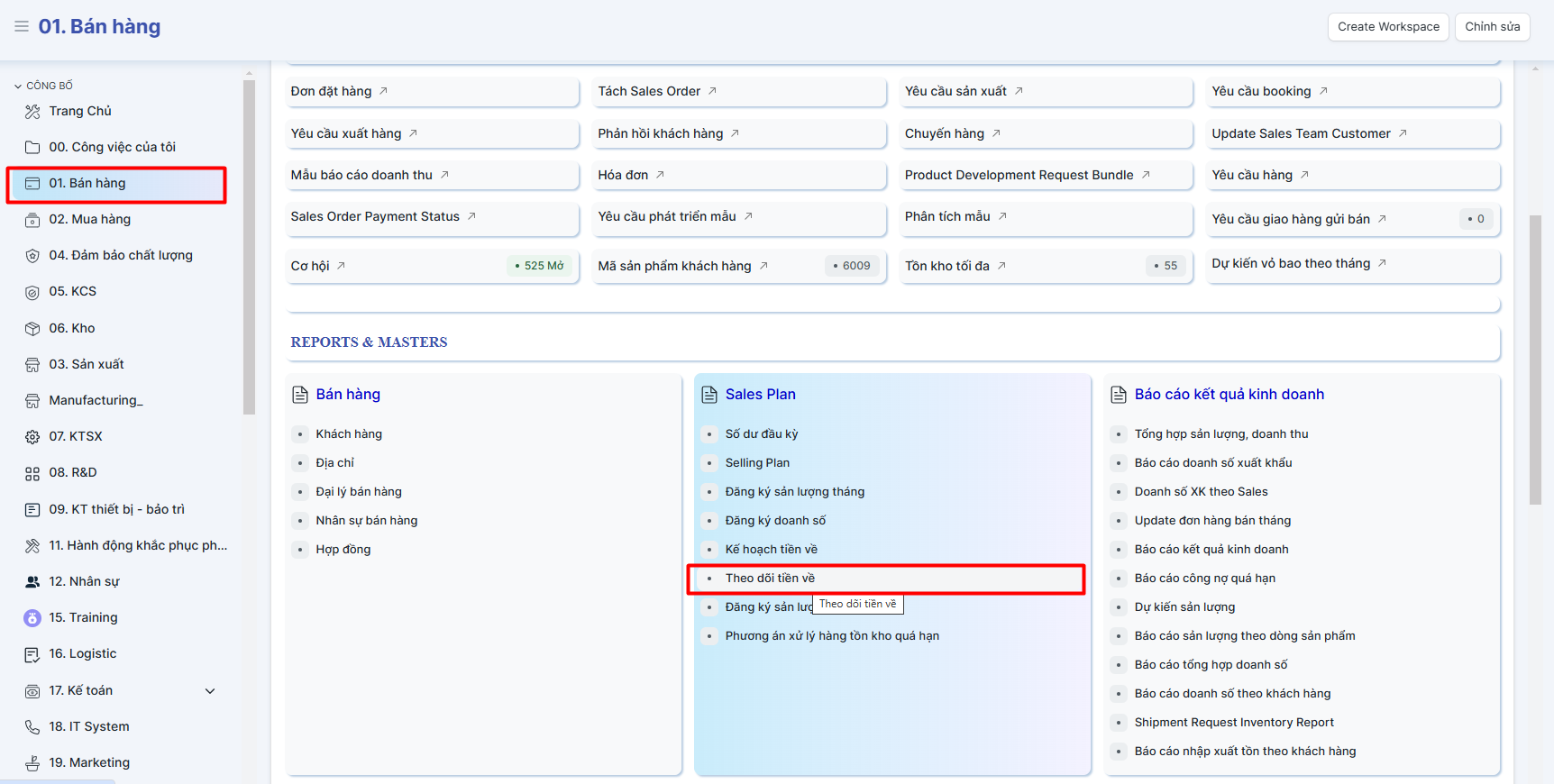 Trang chính > 1. Bán hàng > Theo dõi tiền về