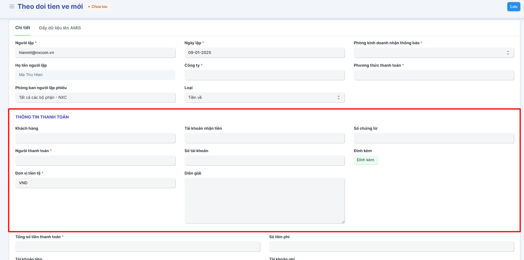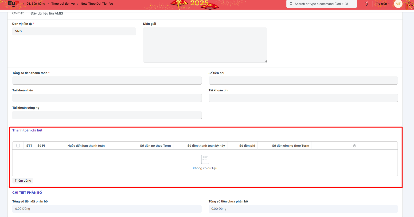 Bước 2: Bấm Thêm Theo dõi tiền về: