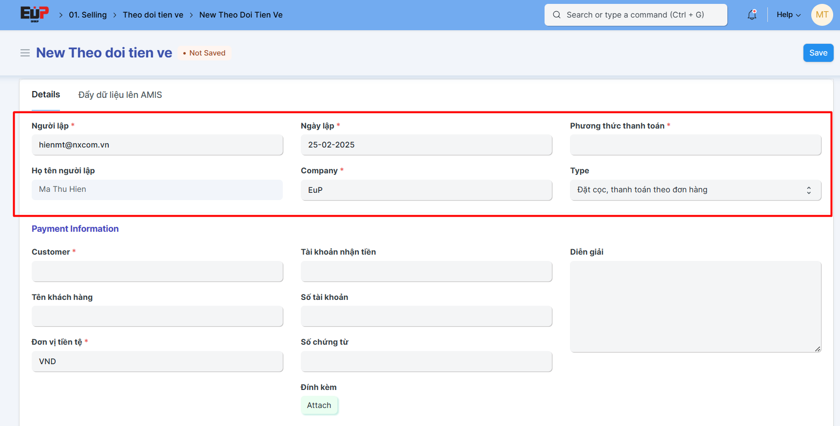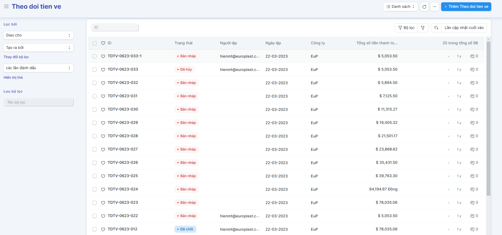 EuP - Quản lý tiền về