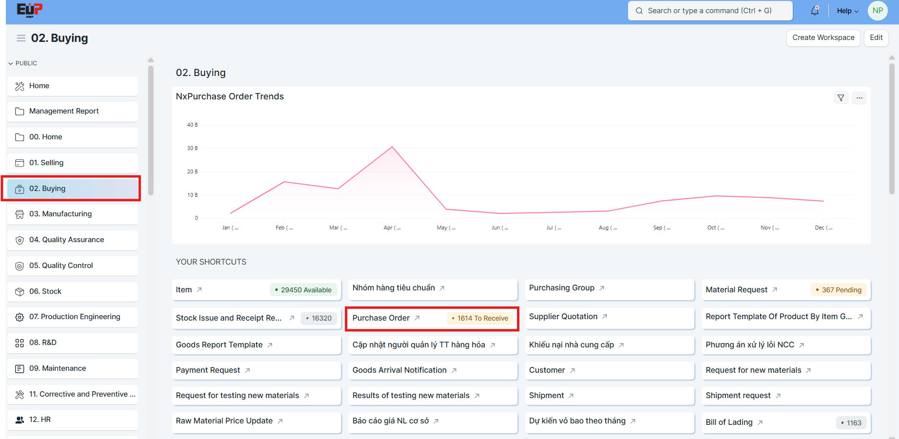 Trang chính -> 02. Buying -> Purchase Order