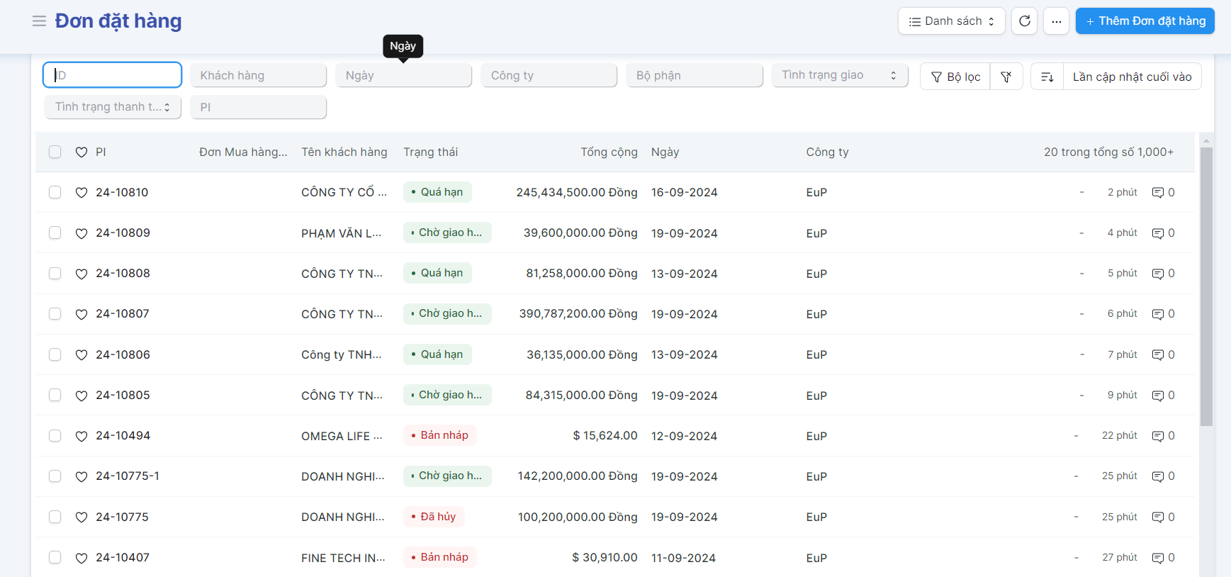 Trang chính > 01. Bán hàng > Đơn đặt hàng