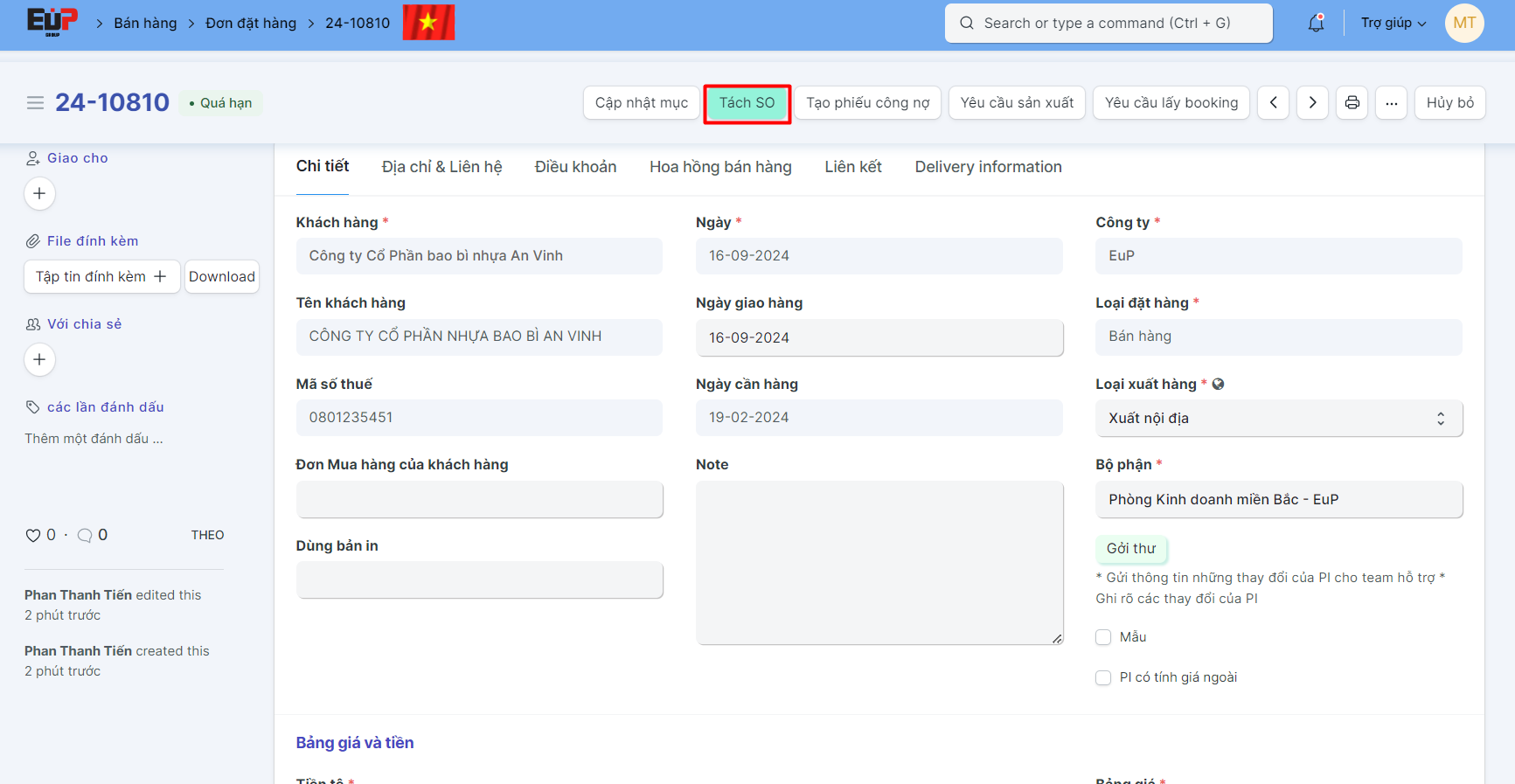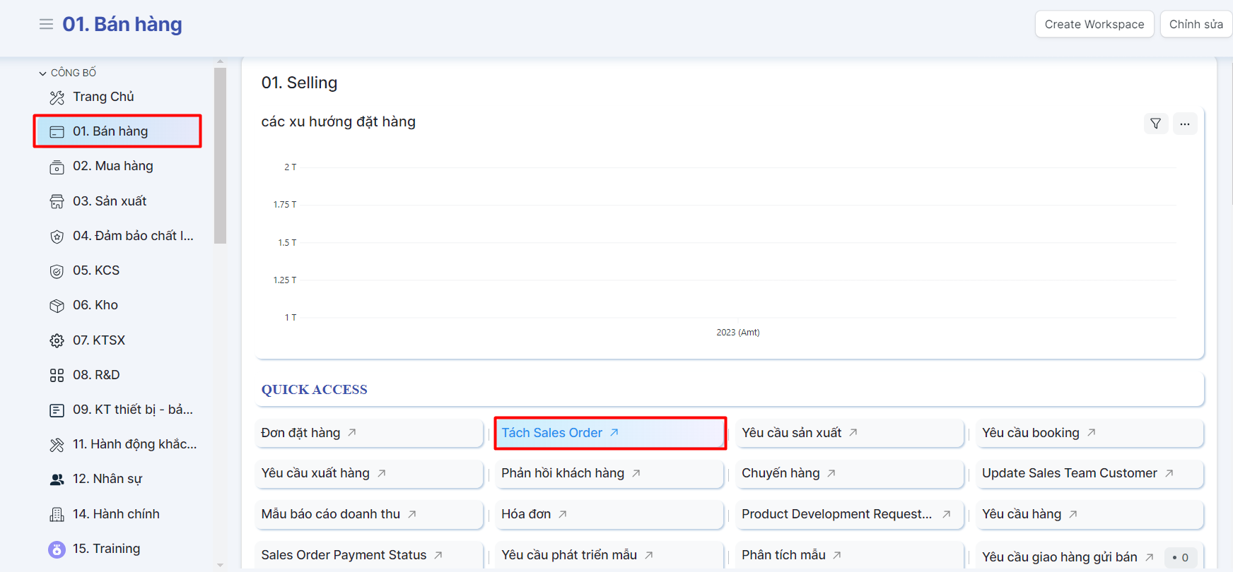 Trang chính > 01. Bán hàng > Tách Sales Order