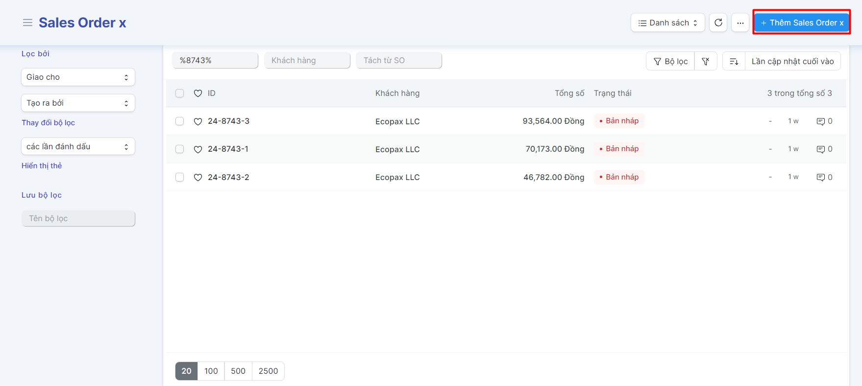 Bước 2: Bấm "Thêm Sales Order x":