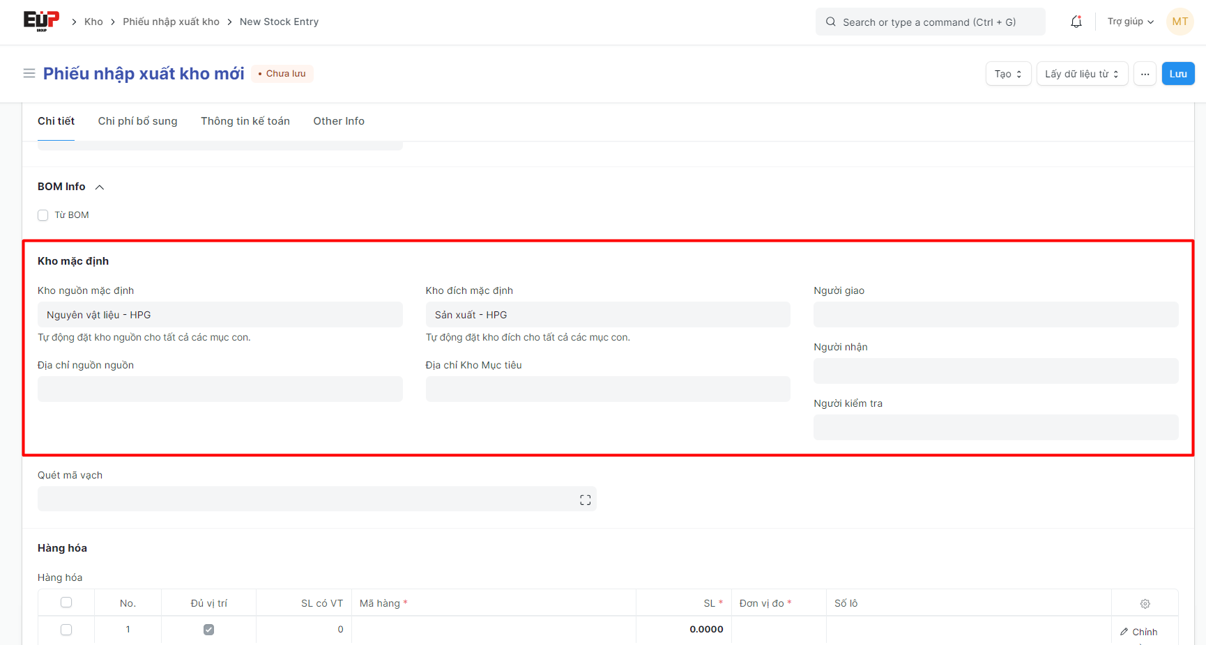 EuP - Phiếu Nhập xuất kho - Stock Entry