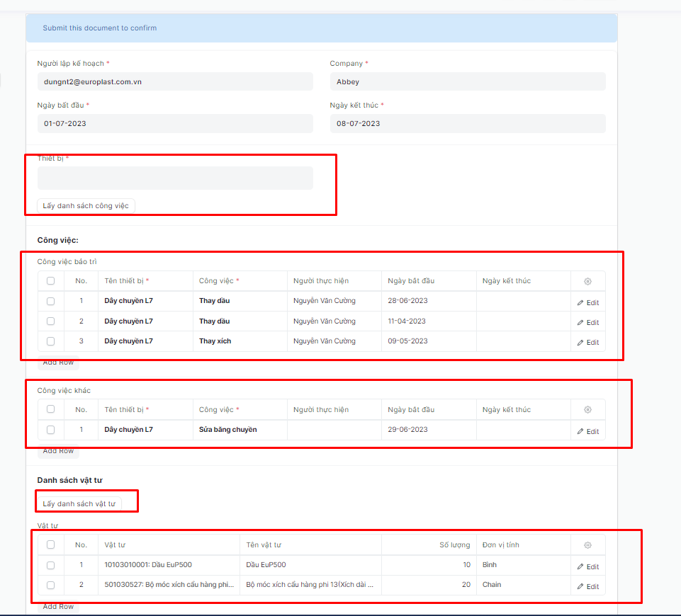 EuP - Tạo kế hoạch bảo trì nhỏ