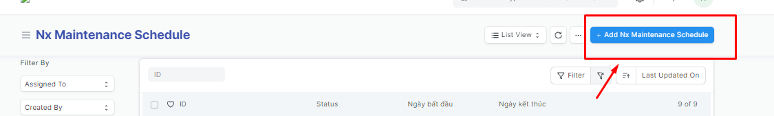 Bước 2: Tạo mới Kế hoạch bảo trì