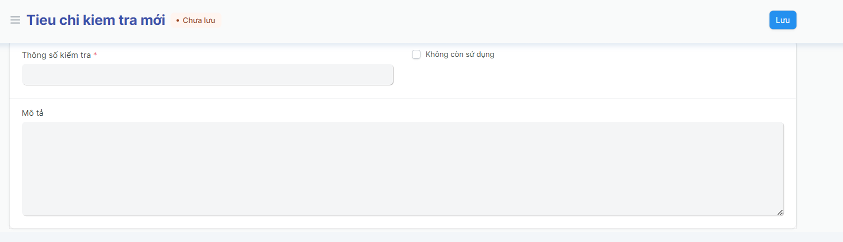 Bước 2: Nhập tên tiêu chí kiểm tra, mô tả:
