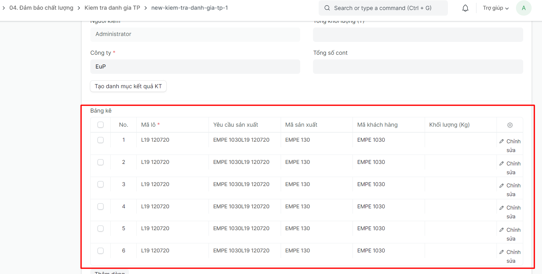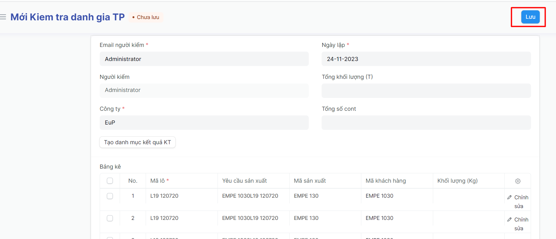 3.1. Tạo mới 1 phiếu kiểm tra thành phẩm