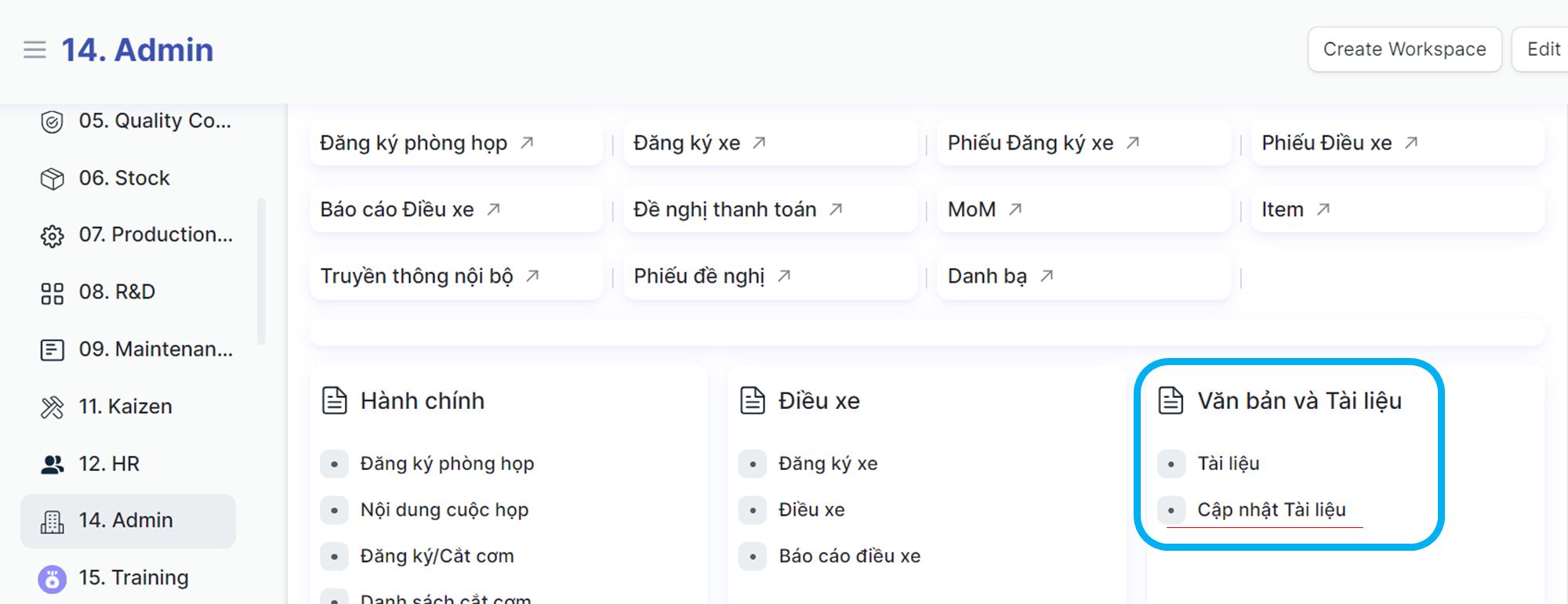 Bước 1: Để cập nhật tài liệu, người dùng vào thư mục Cập nhật tài liệu.