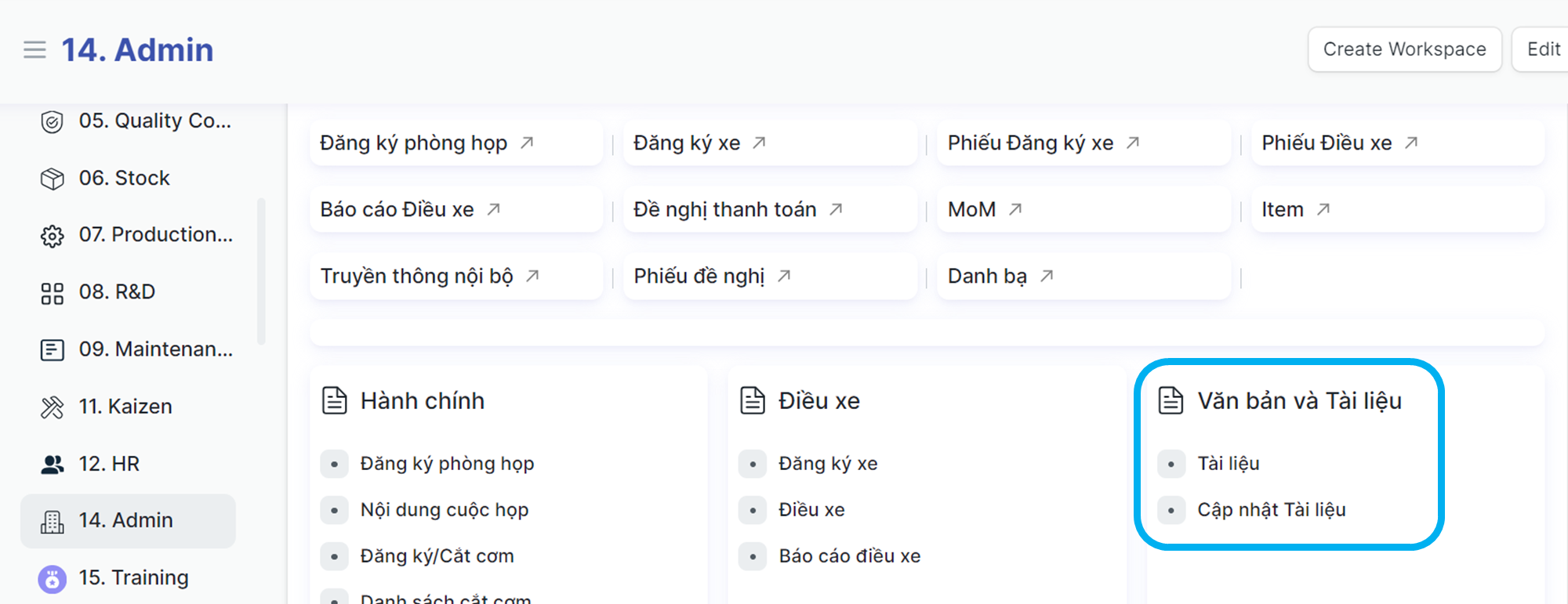 Bước 1: Khởi tạo tài liệu gốc: người dùng mở thư mục : Cập nhật tài liệu