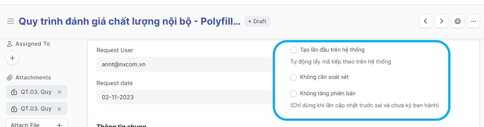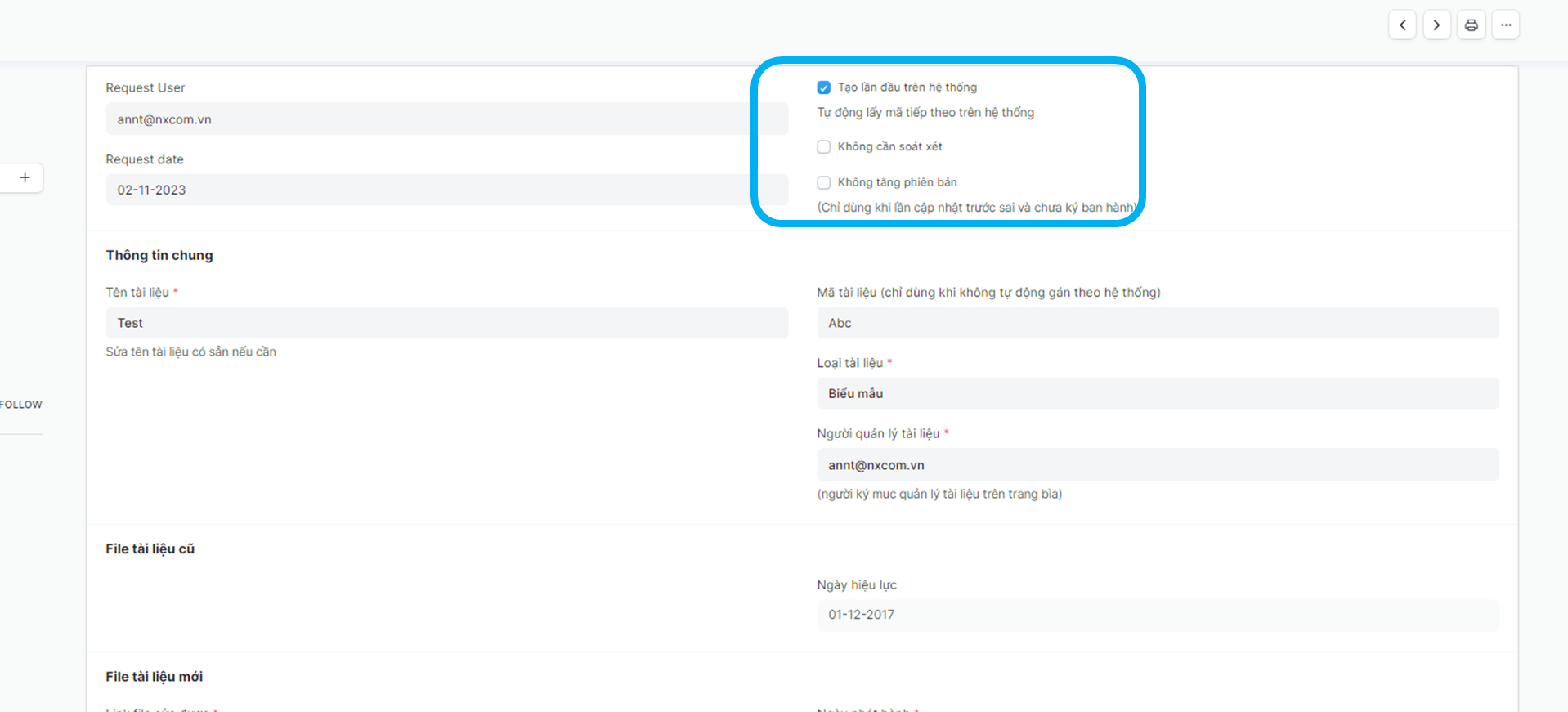 Nếu là loại không cần phê duyệt: Thì chọn vào trường không cần soát xét.