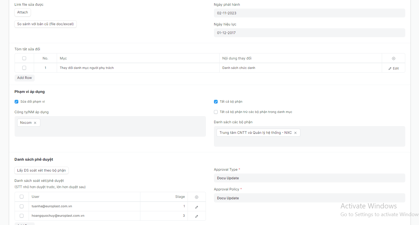 Khi cập nhật tài liệu, sẽ có loại cập nhật cần phê duyệt và loại không cần phê duyệt.