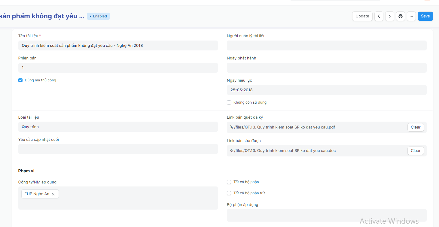 EuP - Quản lý văn bản, tài liệu - Docu, Docu Update