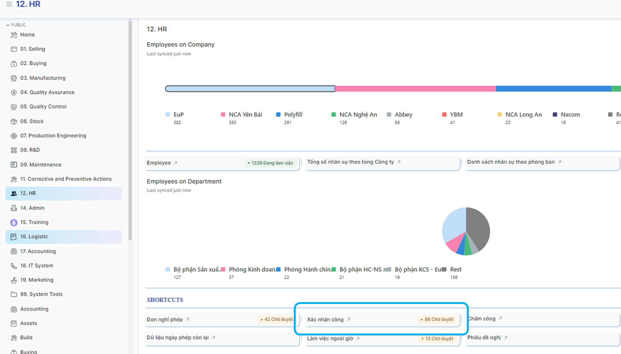 Để vào Opportunity, từ giao diện trang chính, chọn mục 12.HR>> Xác nhận công
