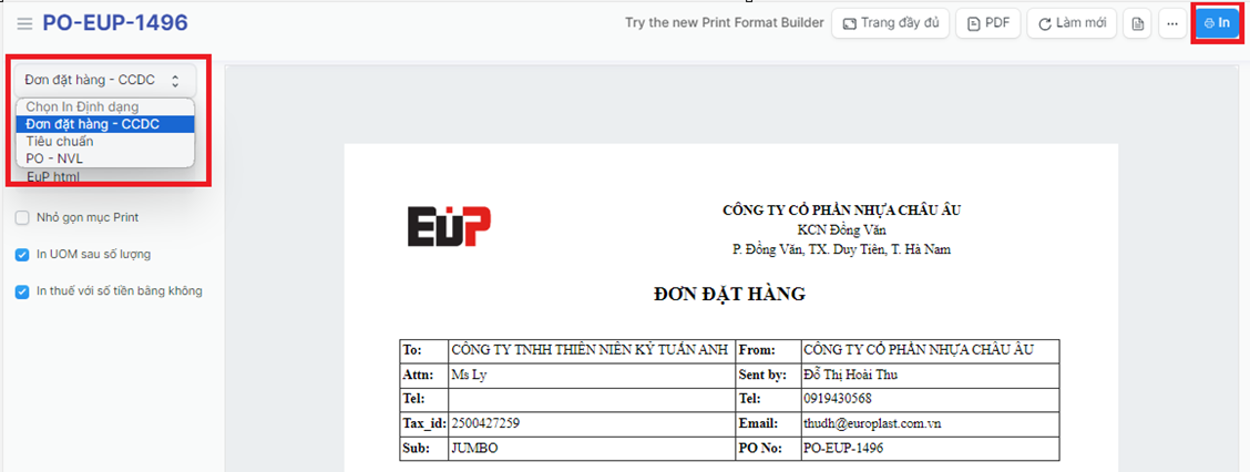 EuP - Đơn đặt hàng (mua) - Purchase Order