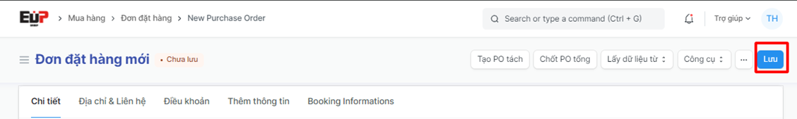 Bước 9: Bấm “Lưu” để lưu Đơn đặt hàng vừa tạo:
