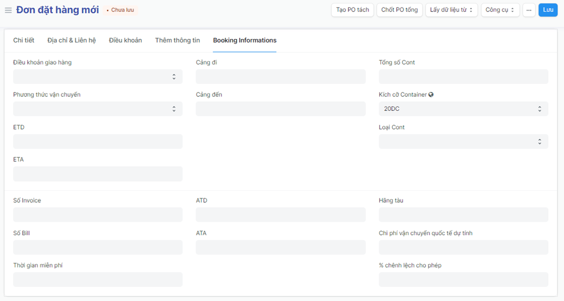 - Cảng đến: Điền thông tin cảng đến