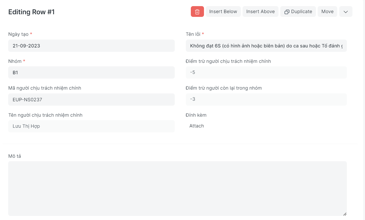 Nhóm: Nhóm 6S mắc lỗi không phù hợp 6S (nhóm có người phạm lỗi 6S)