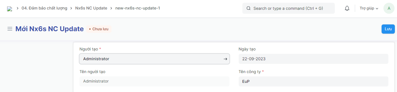 Tên người tạo (Mặc định theo user đang đăng nhập tạo phiếu)