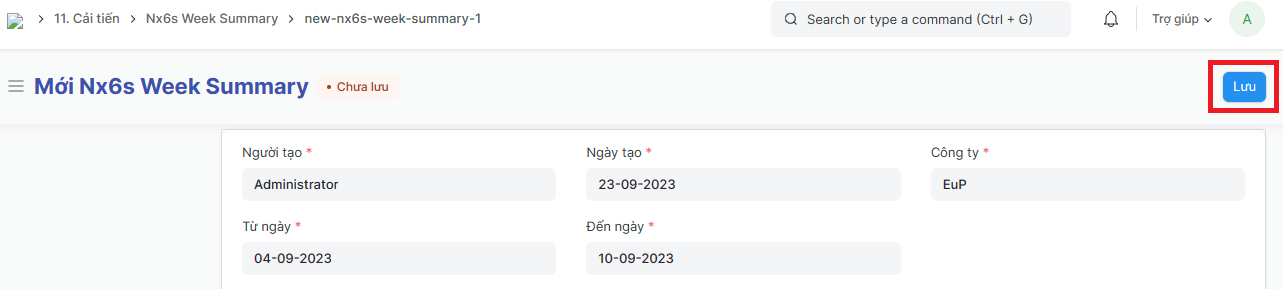 Bước 3: Tích vào lưu để lưu Phiếu tổng kết 6S tuần vừa tạo: