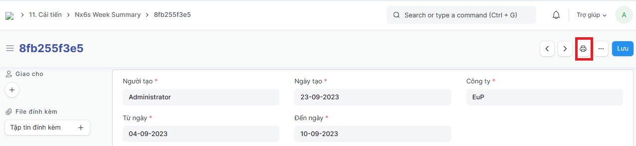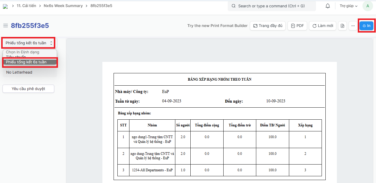 Tạo và in Phiếu tổng kết 6S hàng tuần tại nhà máy: