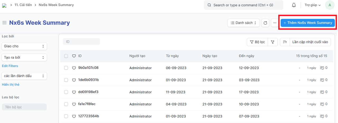 Trang chính > Đảm bảo chất lượng > Báo cáo tuần (Nx6s Week Summary)