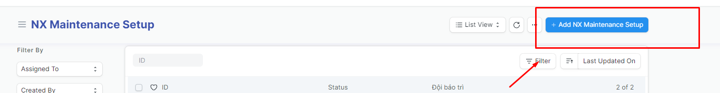 Bước 2: Tạo mới Thiết lập bảo trì